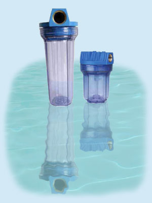 Filtri in plastica 2 pezzi: testata di colore blu, in PP caricato, con attacchi